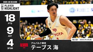 【プレーまとめ】A東京#3 テーブス 海|第30節|04.08.2026 プロバスケ (Bリーグ)