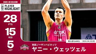 【プレーまとめ】秋田#10 ヤニー・ウェッツェル|第31節GAME2|04.12.2026 プロバスケ (Bリーグ)