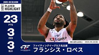 【プレーまとめ】FE名古屋#20 フランシス・ロペス|第31節GAME2|04.12.2026 プロバスケ (Bリーグ)
