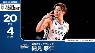 【プレーまとめ】島根#21 納見 悠仁|第31節GAME2|04.12.2026 プロバスケ (Bリーグ)