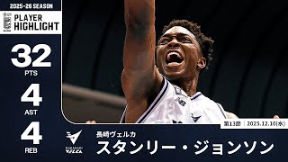 【プレーまとめ】長崎#14 スタンリー・ジョンソン|第13節|12.10.2025 プロバスケ (Bリーグ)