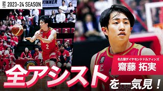 【一気見Bリーグ】名古屋D#2 齋藤 拓実の2023-24 シーズンの全アシストまとめ|「アシスト」平均スタッツ第4位|B.LEAGUE 2023-24 シーズン