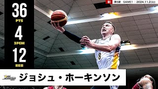 【プレーまとめ】SR渋谷#8 ジョシュ・ホーキンソン|第11節|12.11.2024 プロバスケ (Bリーグ)