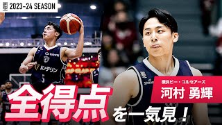 【一気見Bリーグ】横浜BC#5 河村 勇輝の2023-24 シーズンの全得点まとめ|「得点」平均スタッツ第2位|B.LEAGUE 2023-24 シーズン