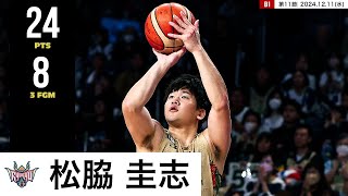【プレーまとめ】琉球#15 松脇 圭志|第11節|12.11.2024 プロバスケ (Bリーグ)