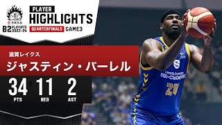【プレーまとめ】滋賀#24 ジャスティン・バーレル|日本生命 B2 PLAYOFFS QUARTERFINALS 2023-24 GAME3|5.05.2024 プロバスケ (Bリーグ)