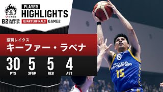 【プレーまとめ】滋賀#15 キーファー・ラベナ|日本生命 B2 PLAYOFFS QUARTERFINALS 2023-24 GAME2|5.04.2024 プロバスケ (Bリーグ)