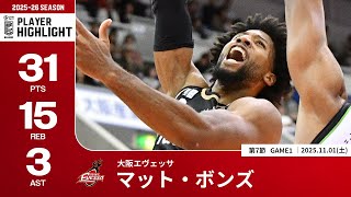 【プレーまとめ】大阪#5 マット・ボンズ|第7節GAME1|11.01.2025 プロバスケ (Bリーグ)